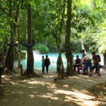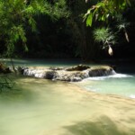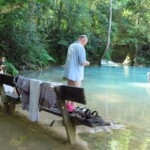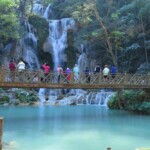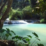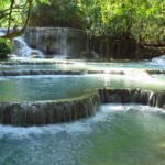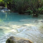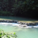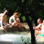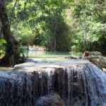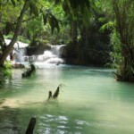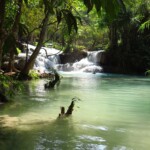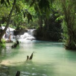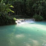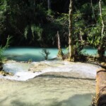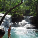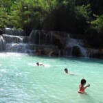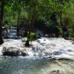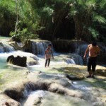 Třetí den našeho pobytu se jdeme podívat na Kuang Si vodopády. Ty leží asi 30km jižně od města. Takže bereme motorku a jedeme si pohodičku po docela hezký silnici až do parku s vodopády. Před vstupem je hromada stánků s jídlem, uvnitř parku potom prakticky nic. Je to taková hezká džungle. Ještě před vodopády je malá zoo, kde je spousta medvědů, kteří v Laosu žijí i divoce. Vstup do areálu je 60kč na osobu, ale musím říct, že to za to opravdu stojí. Vodopády jsou zaručeně nejhezčí, co jsem kdy viděl. Když se v nich koupete a zastavíte se na chvilku na místě, tak k vám připlavou rybičky a začnou vám okusovat nohy. Takže je to taková obdoba Fish Spa jako v Thajsku, ale v ceně vstupu do parku a myslim, že mnohem lepší. Takže pokud pojedete do Luang Prabangu, rozhodně nevynechejte vodopády, fakt je to pecka.